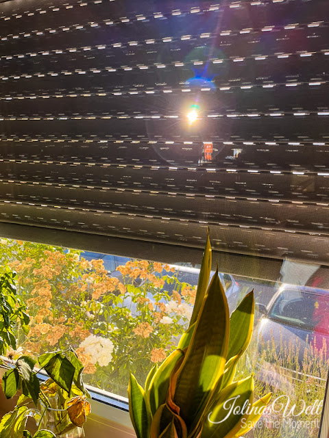 Sobald die Sonne über den Baum der Nachbarn gegenüber steigt, muss ich wieder in der Küche und im Schlafzimmer alles dicht machen.